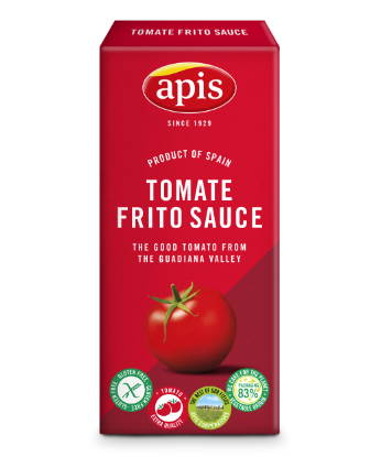 Tomato (170g per 100 of the product), sunflower oil, glucose and fructose syrup, sugar, apple, modified starch, salt, aromas and spices.